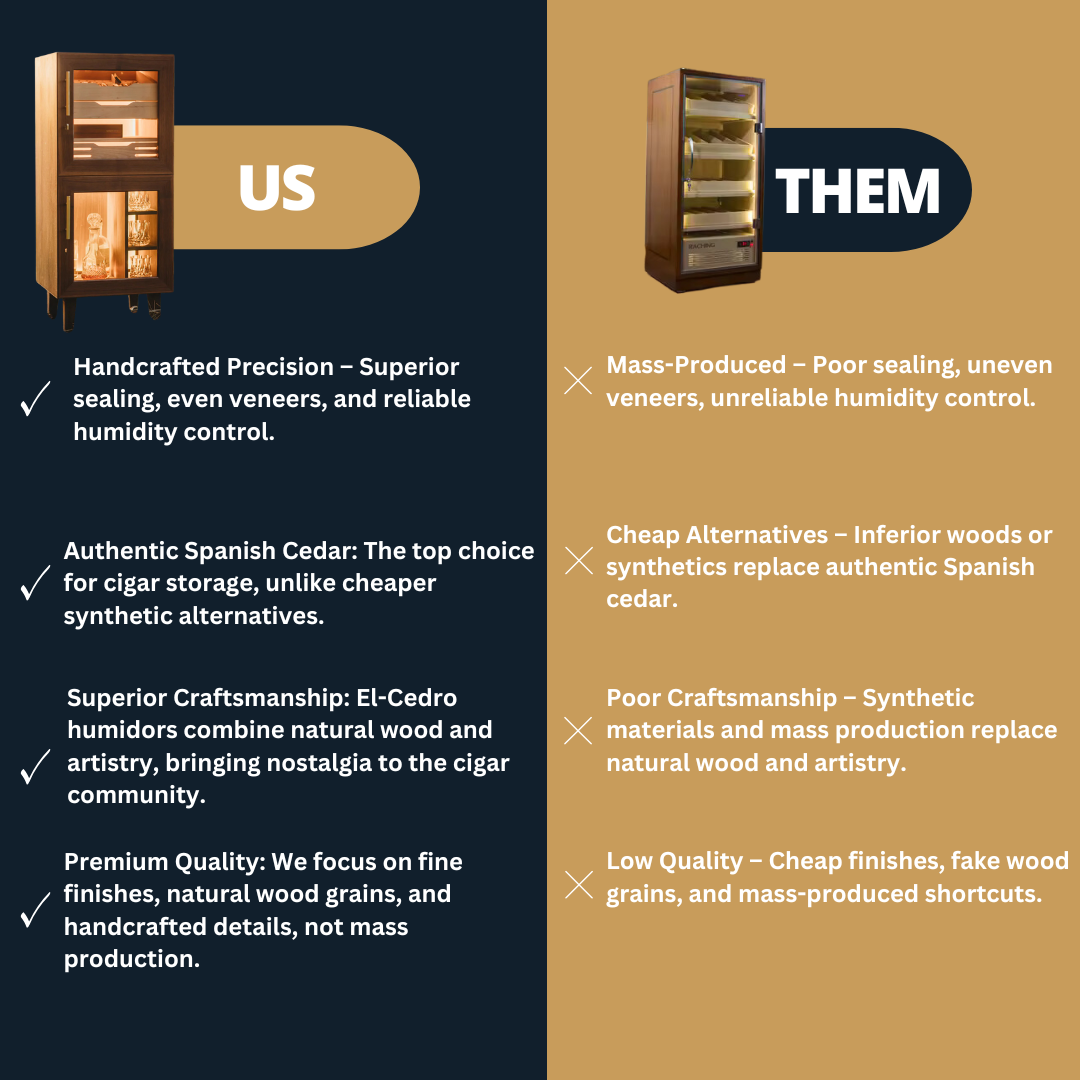At El-Cedro, we take great pride in crafting our humidors by hand with the utmost care and attention to detail. If you encounter any issues with your humidor, please don’t hesitate to reach out to our support team at
