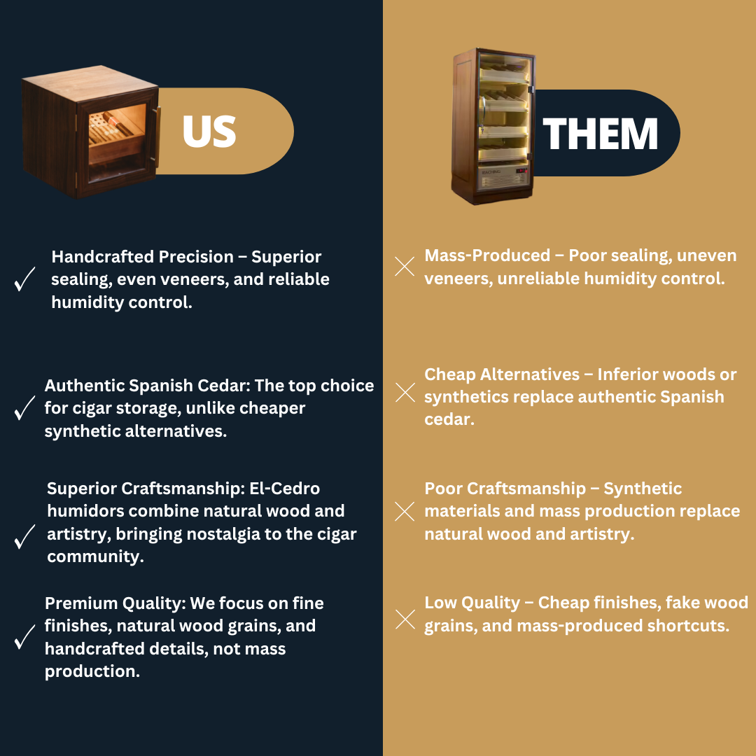 At El-Cedro, we take great pride in crafting our humidors by hand with the utmost care and attention to detail. If you encounter any issues with your humidor, please don’t hesitate to reach out to our support team at