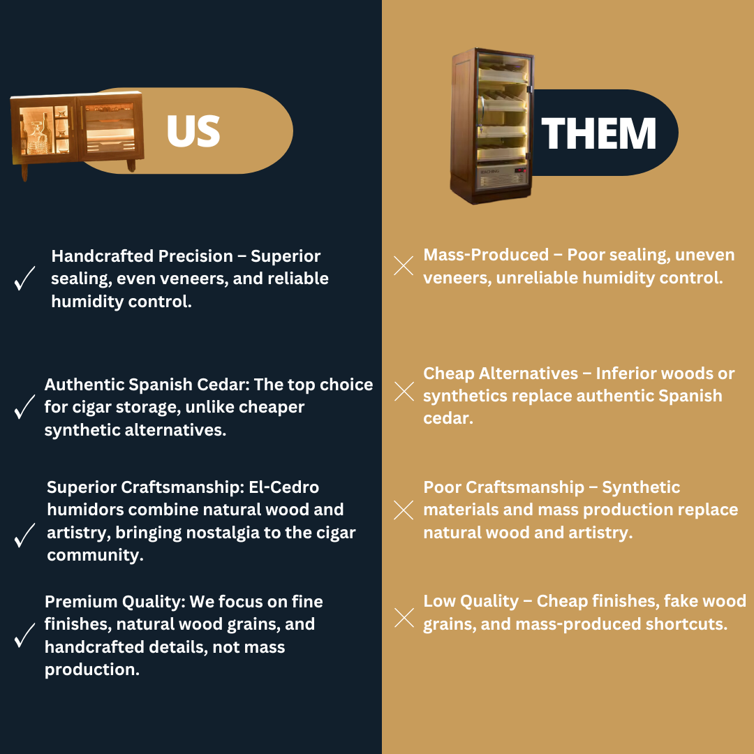 At El-Cedro, we take great pride in crafting our humidors by hand with the utmost care and attention to detail. If you encounter any issues with your humidor, please don’t hesitate to reach out to our support team at